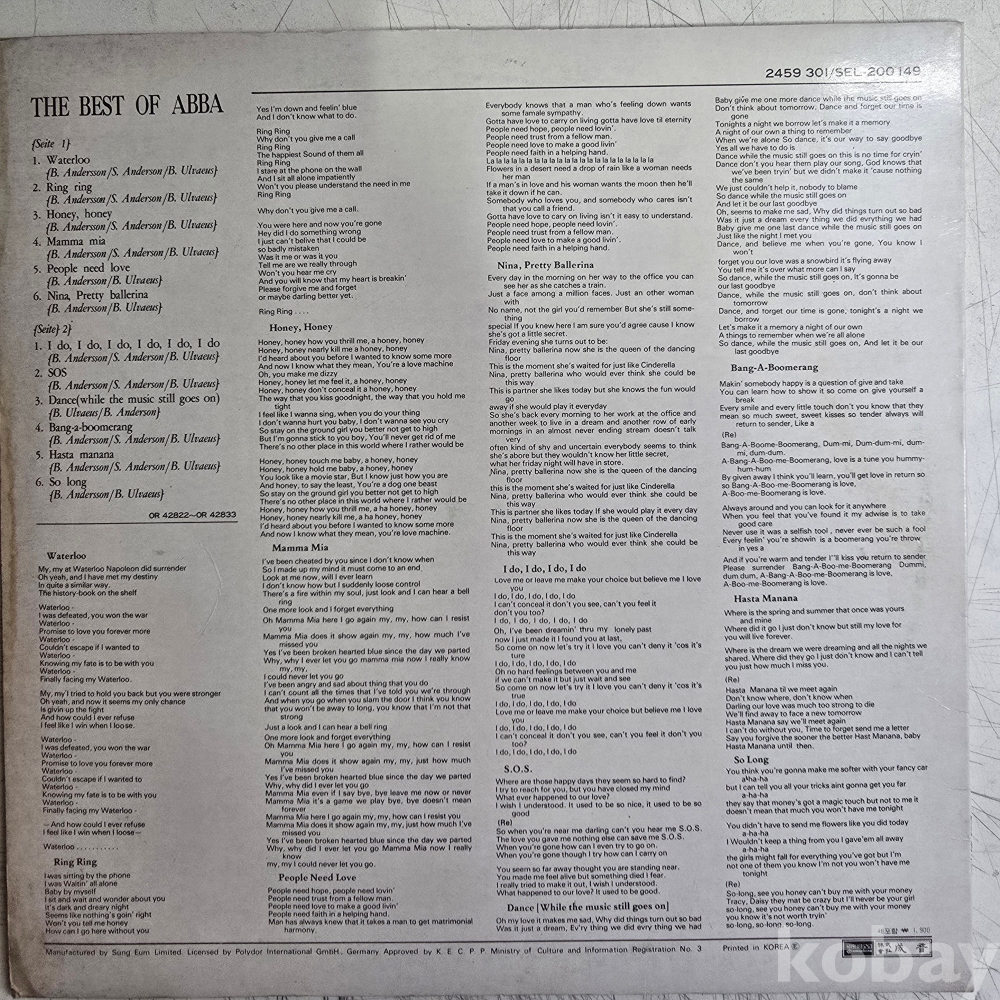 | 자켓상태 | EX : 약간의 마모, 모서리 찢김 존재 | 음반상태 | EX : 재생에 영향 없는 가벼운 기스 존재 | 발매정보 | 초반 | 가사지여부 | 무 |
