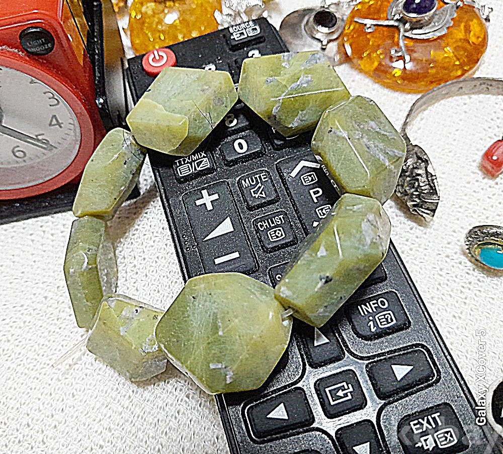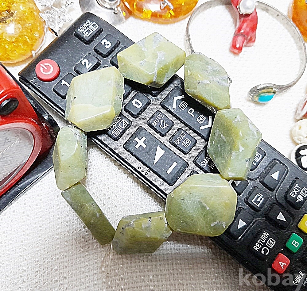 천연 원석인 녹옥을 사용한 팔찌임