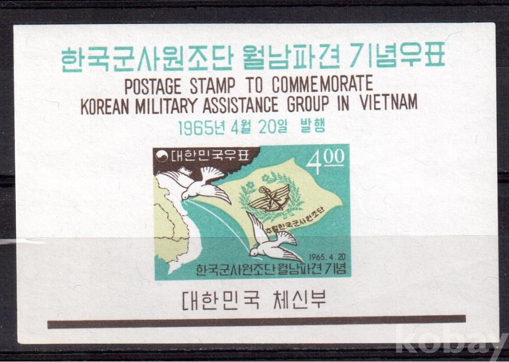 (한국시트) 1965.4.20 한국 군사원조단 월남파견 s/s MNH