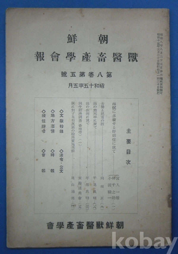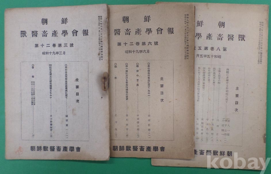 朝鮮 獸醫畜産學會報 3부*제8권제5호(1940년),제12권제3호,제12권제6호(1944년) 조선수의축산학회 발행