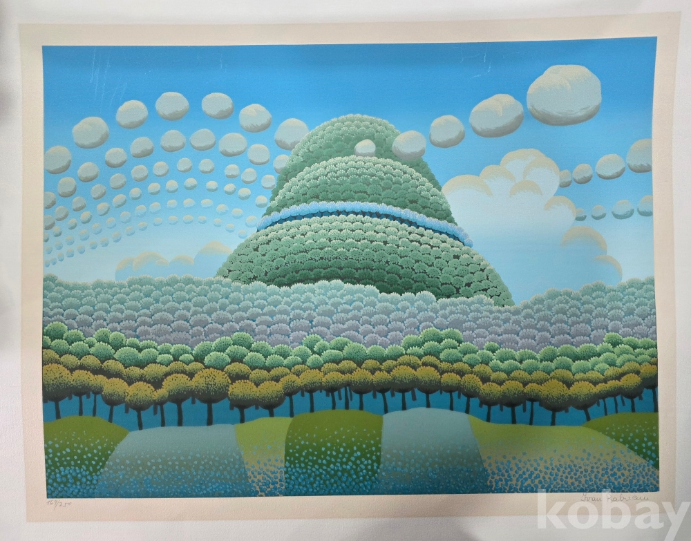 둥근 구름과 층층이 이어진 숲과 언덕,