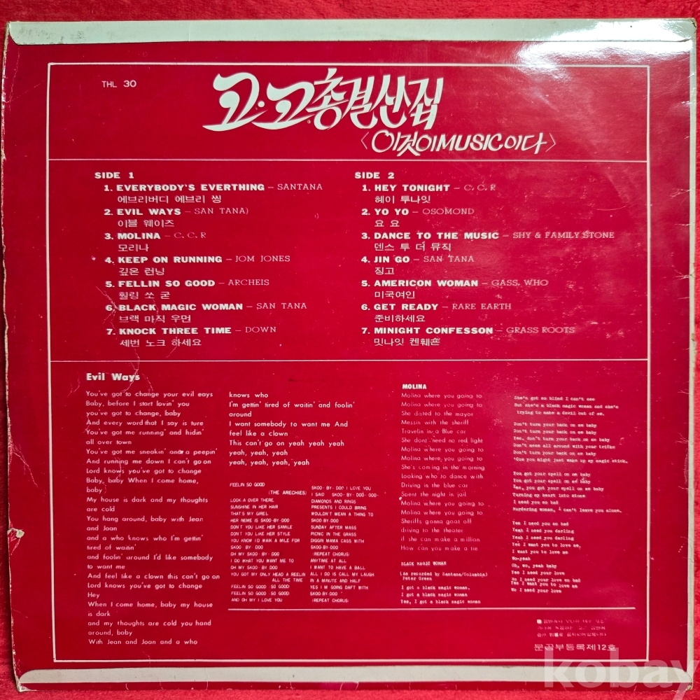 | 자켓상태 | EX : 약간의 마모, 모서리 찢김 존재 | 음반상태 | EX : 재생에 영향 없는 가벼운 기스 존재 | 발매정보 | 초반 | 가사지여부 | 무 |
