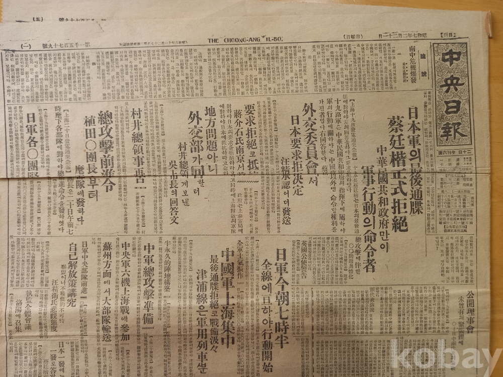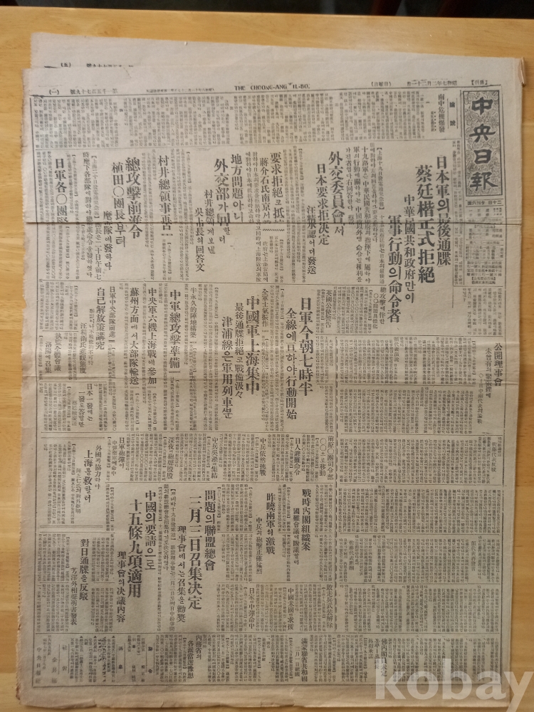中央日報 1932년(昭和 7년) 2월 21일 일요일