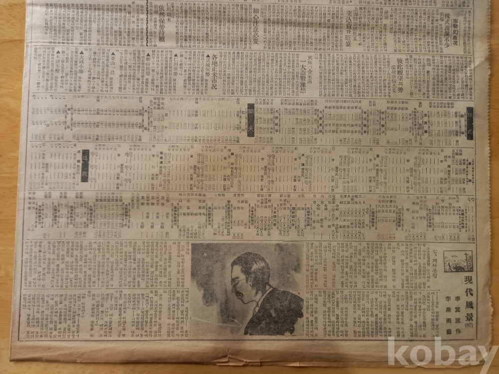 <일본말을>이란 단막기사에서 <한마디 모르는 사람은 없다 그 말은 그 곳은 흡사 일본 마찌같은 풍광을 이루고 있고 거기서는 언제나 게다의 요란한 소음이 우리 서울의 혼마치폭만치나 시끄럽께 행인의 귀청을 울리고 있다...>등등...