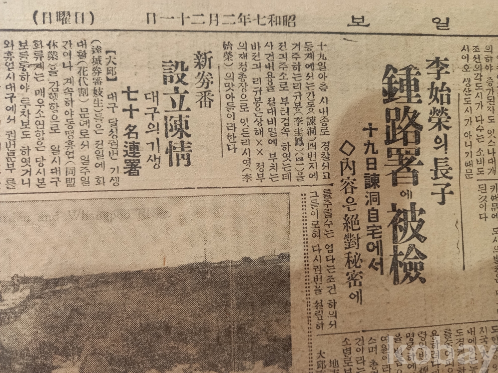 2면: 상단 중앙에 <이시영의 장자 종로서에 피검-19일 간동 자택에서>라는 기사명에서 <검속이 절대비밀에 부쳤다는 것과 검거한 이규봉이 상해xx(임시)정부의 재정총장인 이시영의 맛아들이라>는 기사...