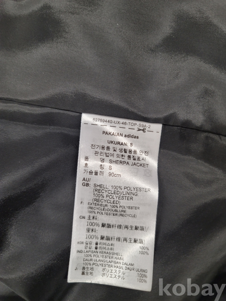 [*천원행복*] L-12-0825 아디다스 뽀글이 점퍼 (S사이즈, 블랙, 가슴둘레 90)