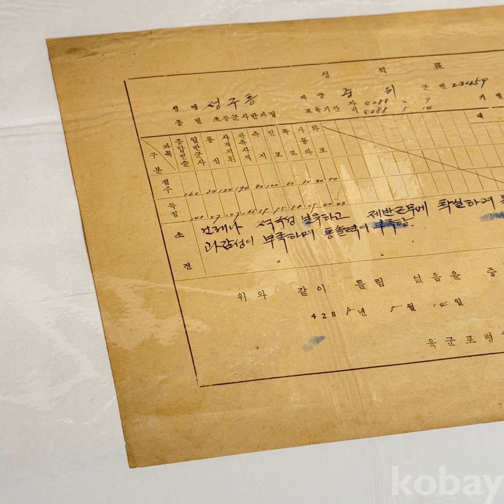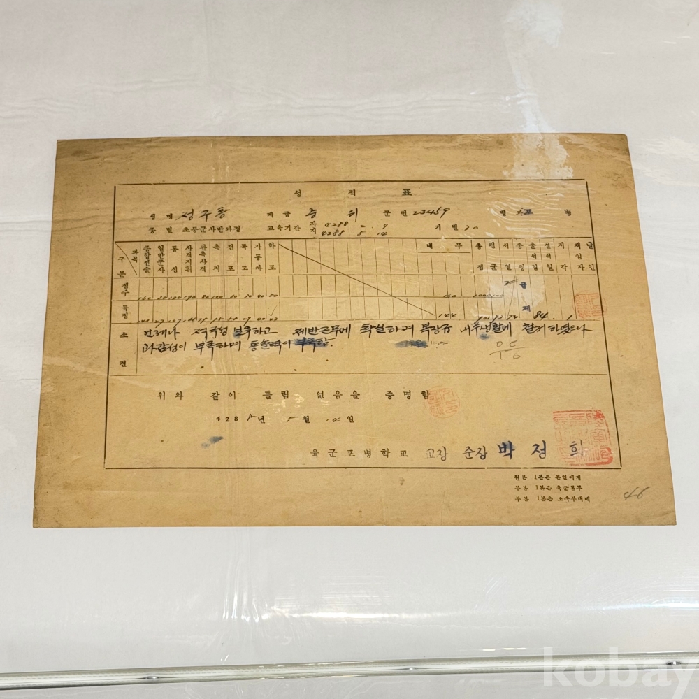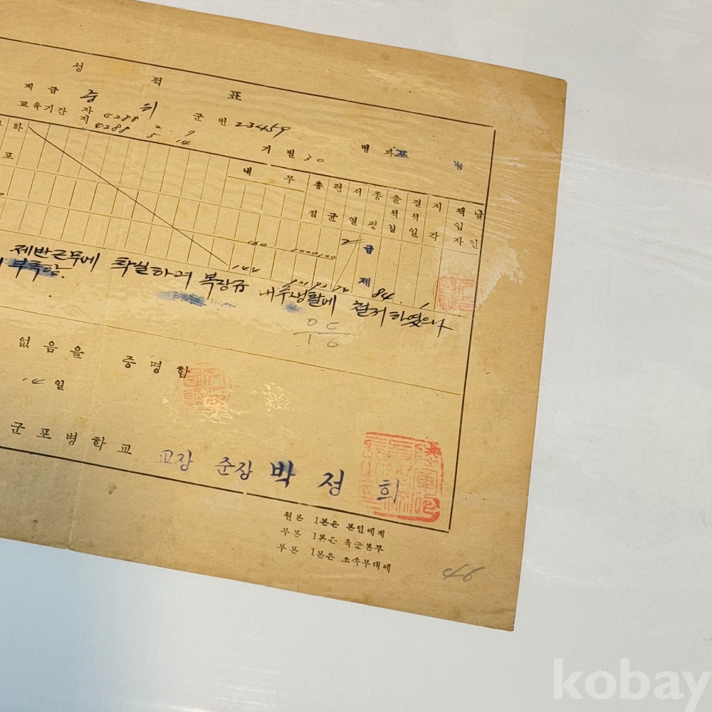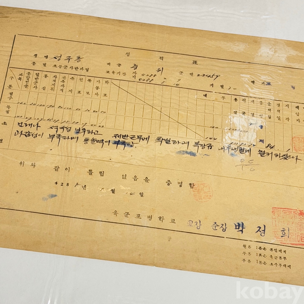 [박정희★대통령 자료] 1955년 육군포병학교 교장 박정희/ 성적표