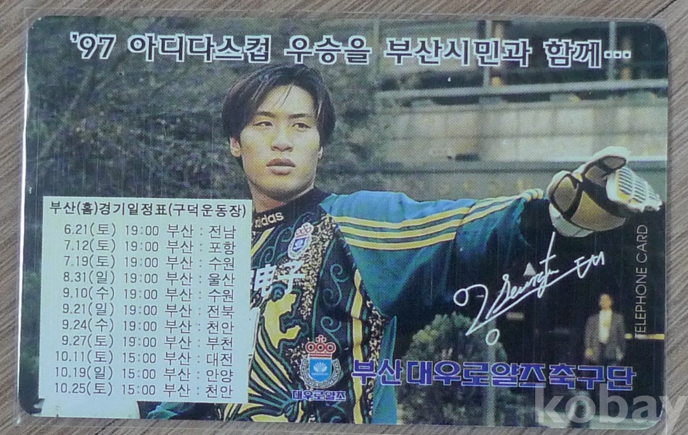 '97 아디다스컵 우승을 부산시민과 함께 광고 전화카드 - 프로축구 부산 대우 로얄즈 축구단 -