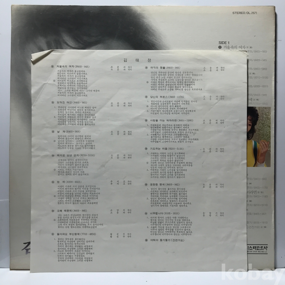 LP 30,940-227 김태정 - 백지로 보낸 편지 . 자켓 EX+ 알판 EX+ 년 국내반