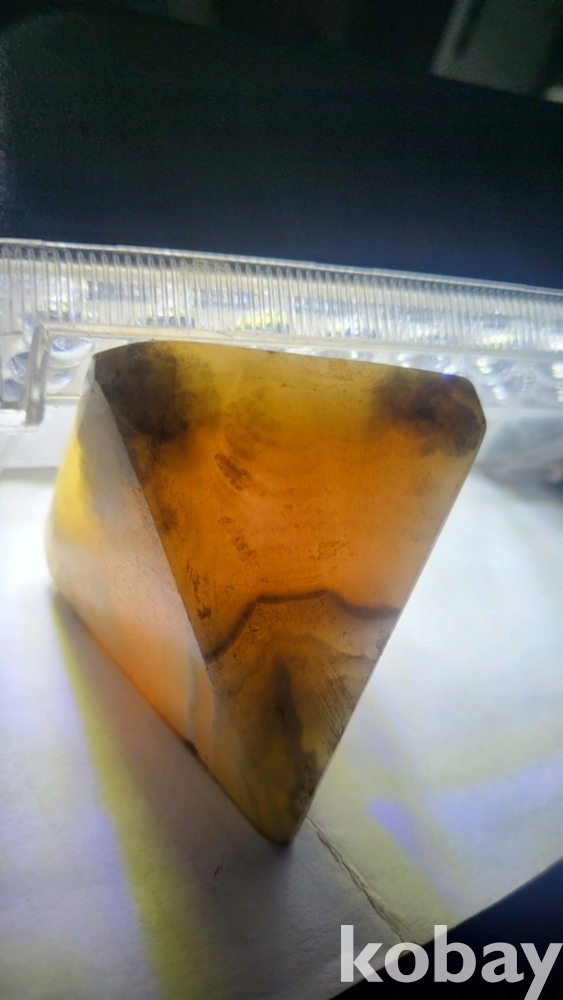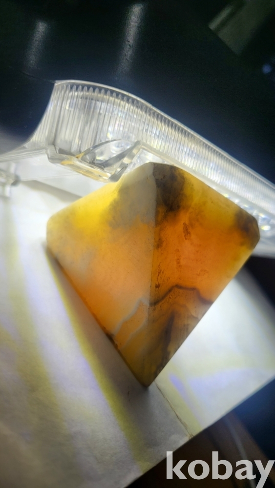 불빛이 투과하는 옥돌로 만든 피라밋 형상 장식품입니다,