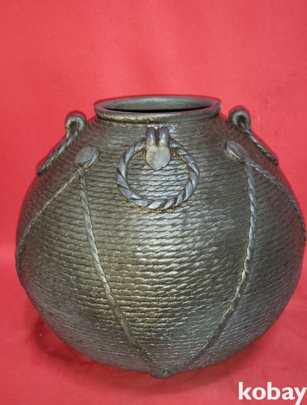 유명 도예가 신라요 류효웅 作 흑청자 사이(四耳) 호(壺)입니다,