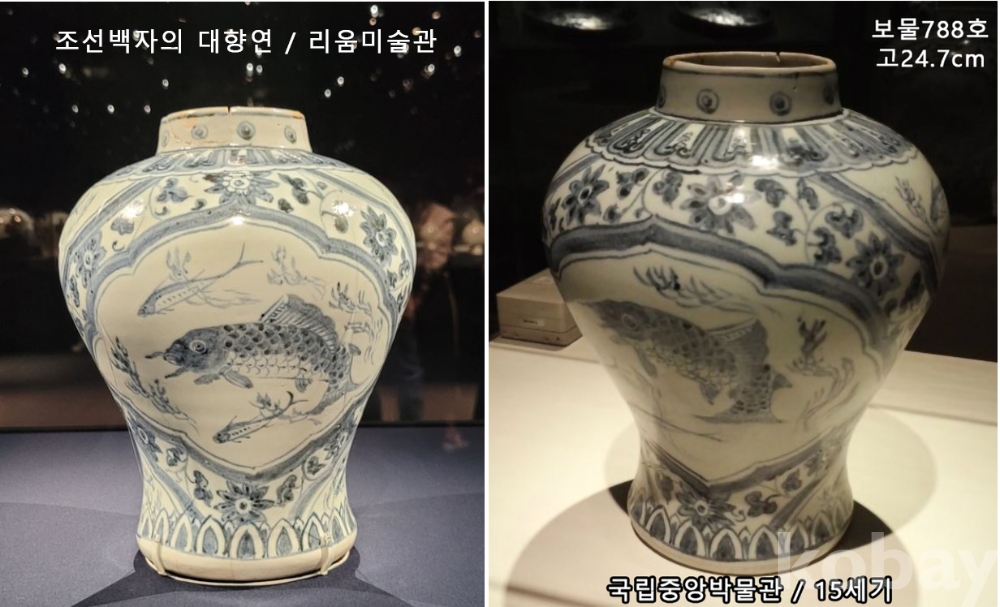 “백자청화잉어무늬항아리”는 너무 유명한 도안이라 여러 백자에