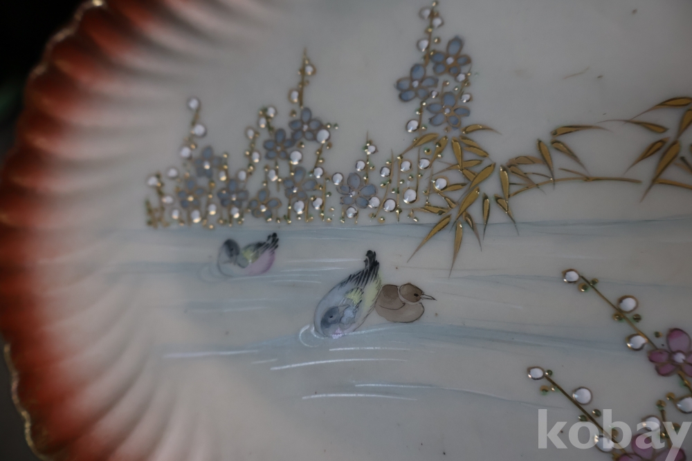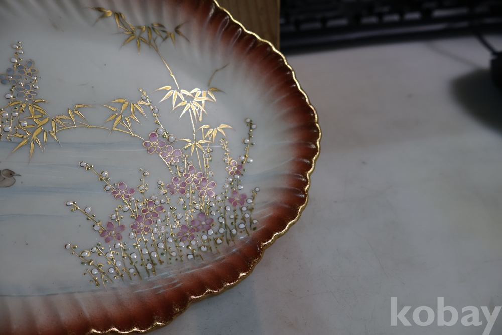 최고급 작품 도자기 접시 임니다 도공의 혼을 가진 1920 30대의 아트누보 명품 임니다 카메라로 잡기 힘든 오묘한 색감 요철 되어진 디자인 등등 최고급 유일무이한 명물 임니다 가로 세로 21.5/15