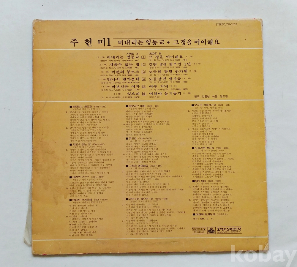 EX : 약간의 마모, 모서리 찢김 존재 음반상태