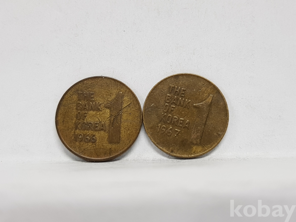 - 초년도 1966년, 1967년 1원 / 1주 사용제 2점 일괄