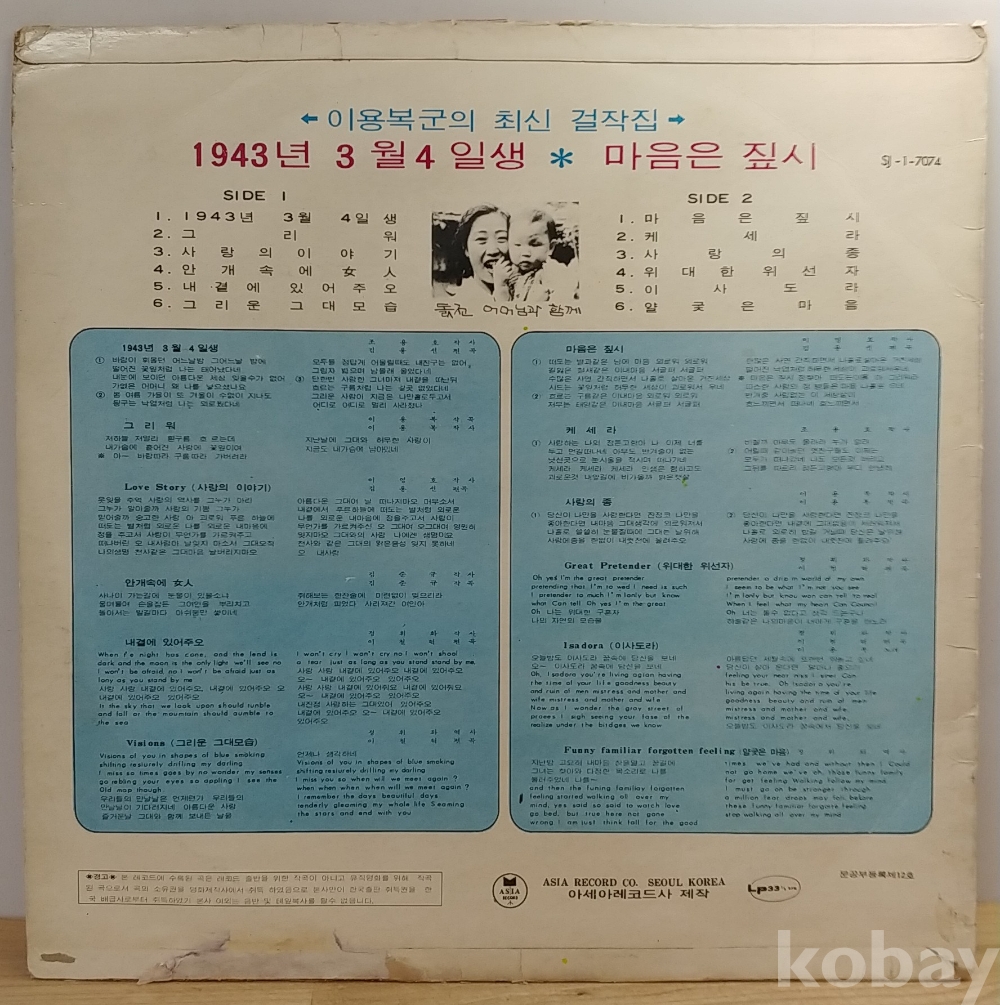 이영복 최신 걸작집 (마음은 짚시 / 그리워) 1971년 신질레코드