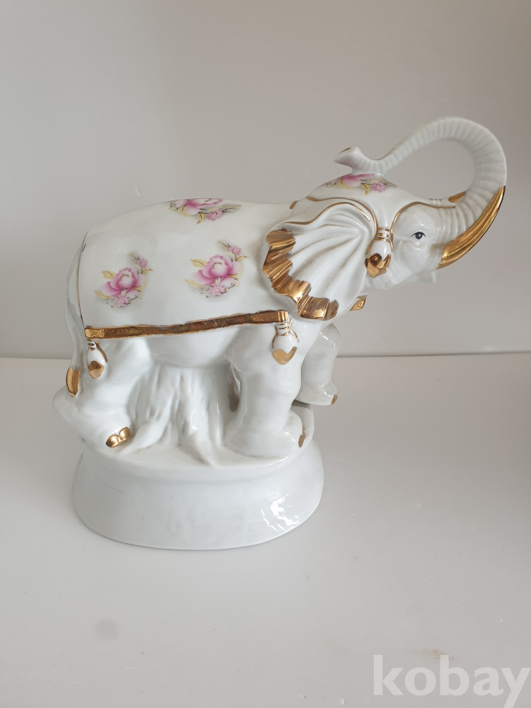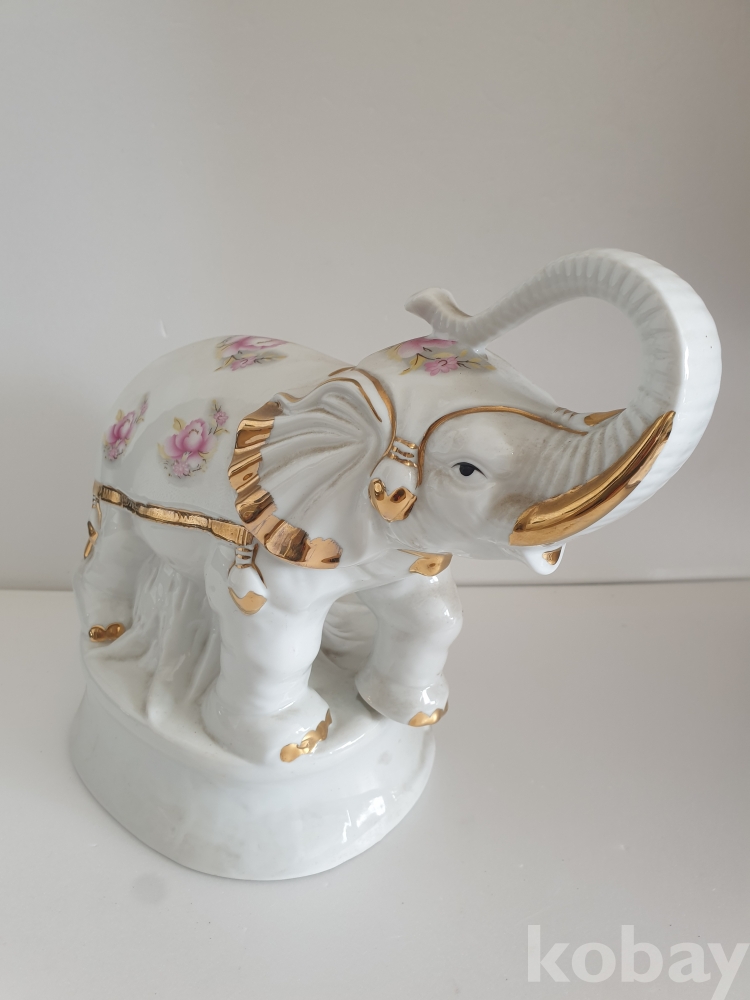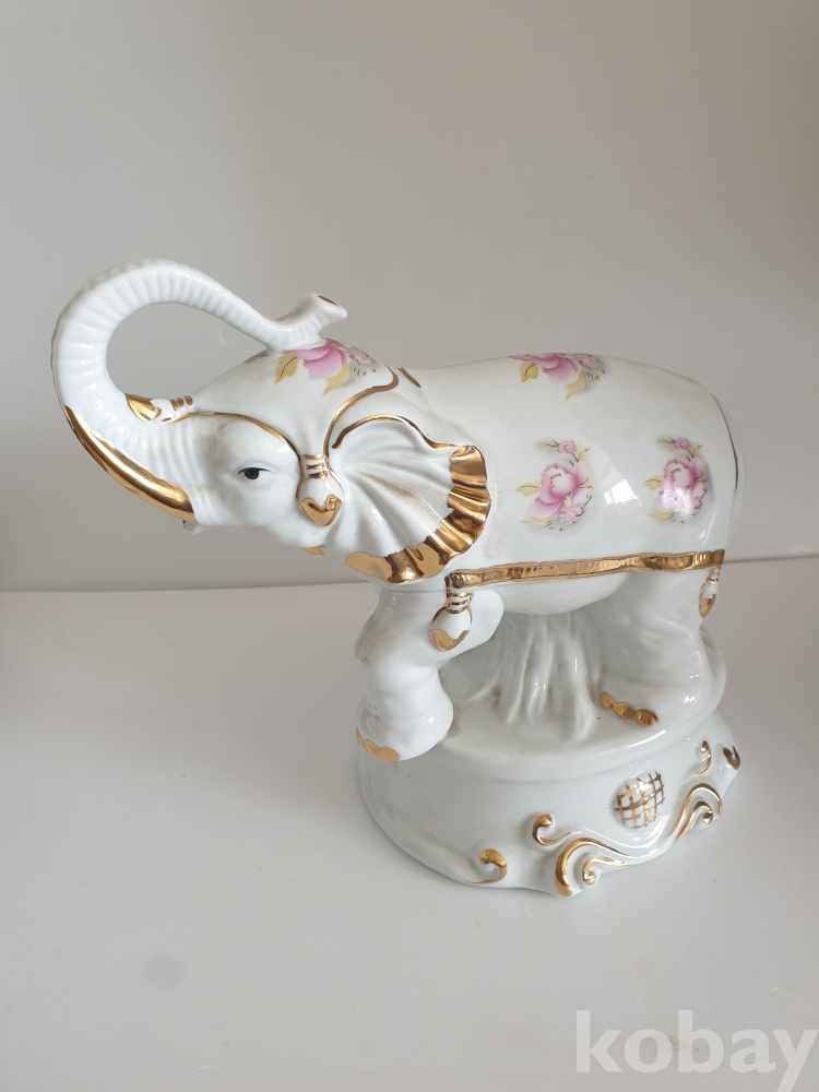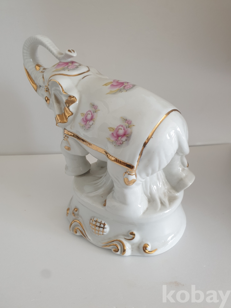 [천원경매] 1-111 재물 인테리어 장식용 도자기 코끼리 입상(사용감있음, 28*23*13cm, 무겁거나 큰 제품과 묶음배송 요청시 단독 착불배송됨)
