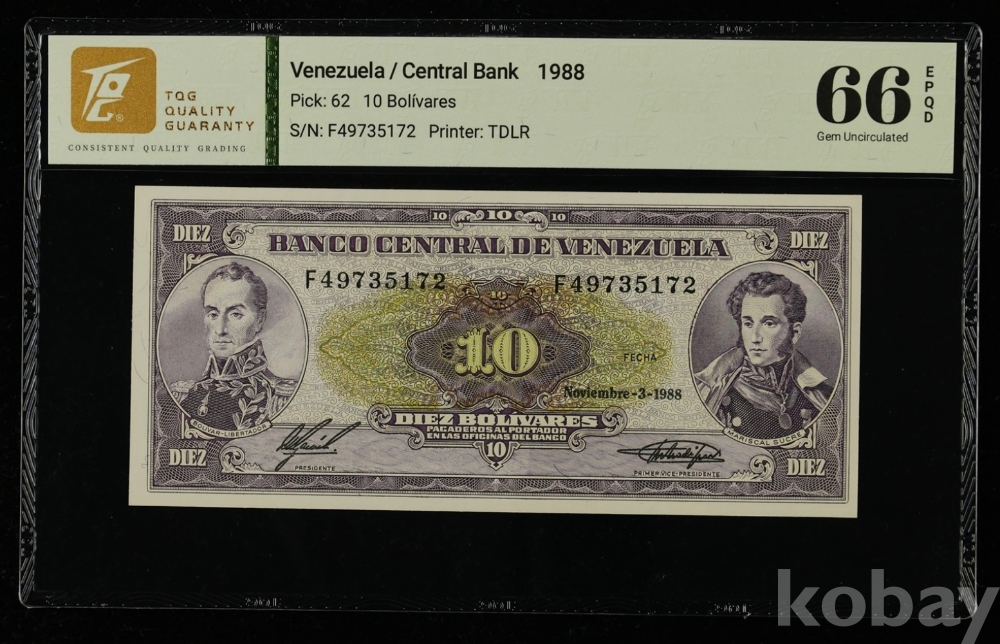 1988년 베네주엘라 10 볼리바르 TQG 66 EPQD