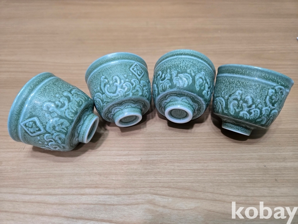 파도 표현이 돌출로 표현된 다기 잔 4개 입니다.