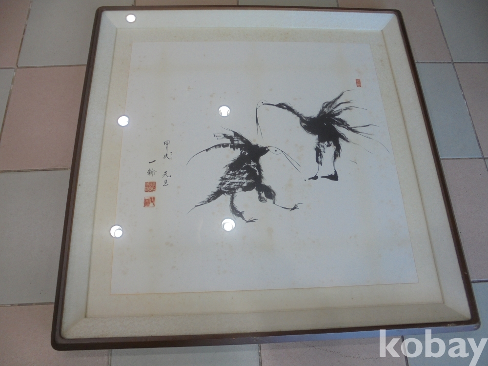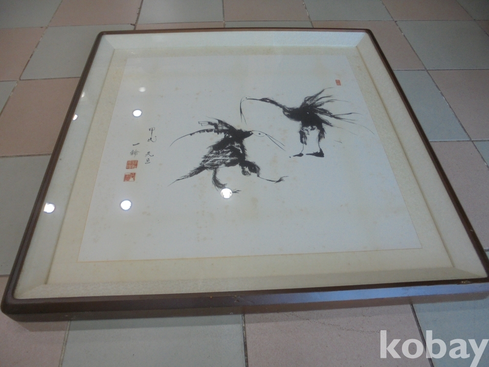일륜 (一輪) 스님 갑술 1994년작 학이 무언가 다른 유명한 일륜스님의 구상적인 학그림 큰액자 가로세로 86 x 90 cm