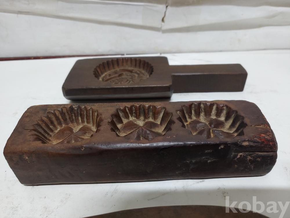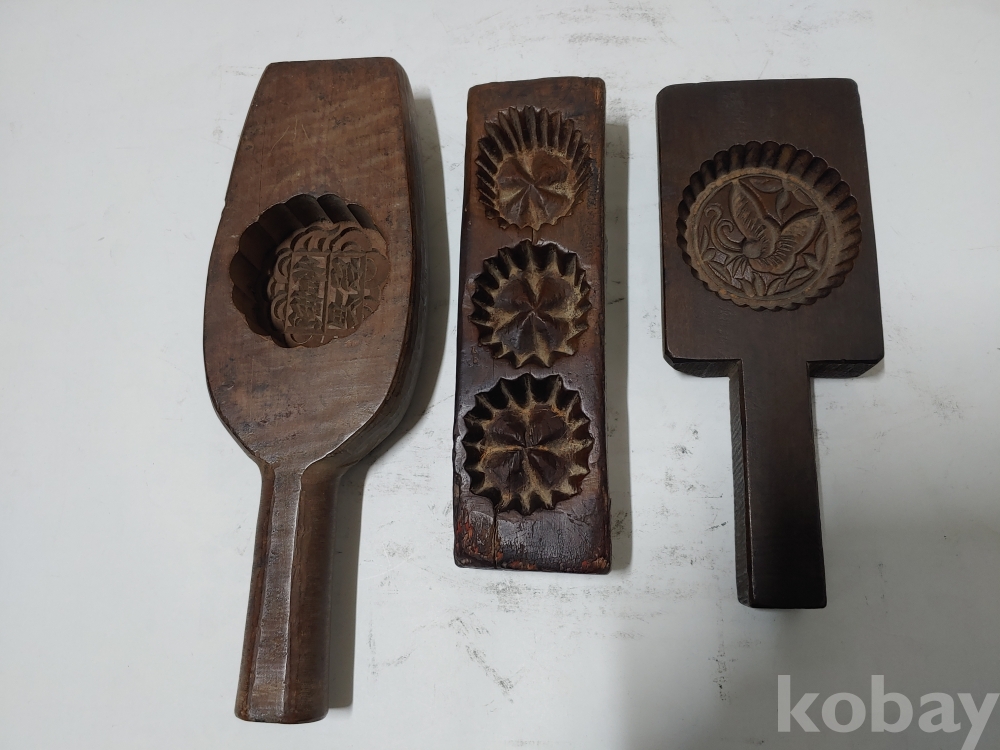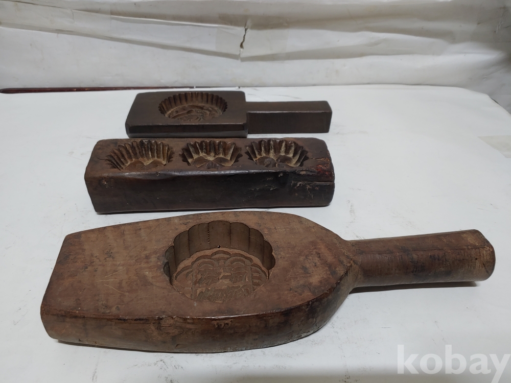 ""옛날 박달나무 소나무 월병과 다식판 3개""
