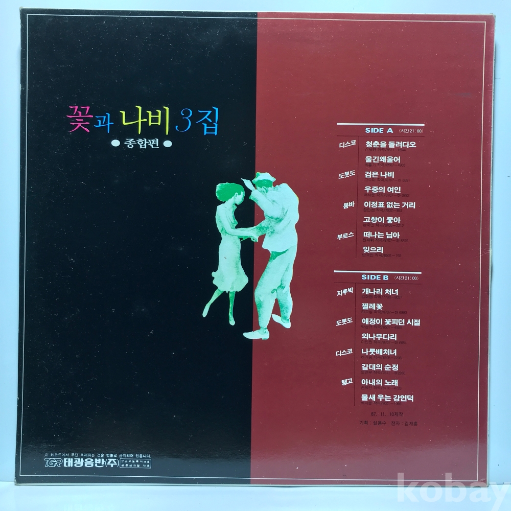 LP 83,800-16 꽃과 나비 - 3집 종합편 (청춘을 돌려다오 / 개나리 처녀) . 자켓 EX+ 알판 VG+ 87 년 국내반