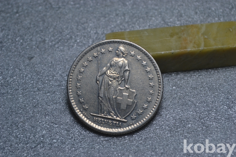 지금은 수집이 어려운 오래전 1974년도 스위스 2프랑 백동화 입니다.
