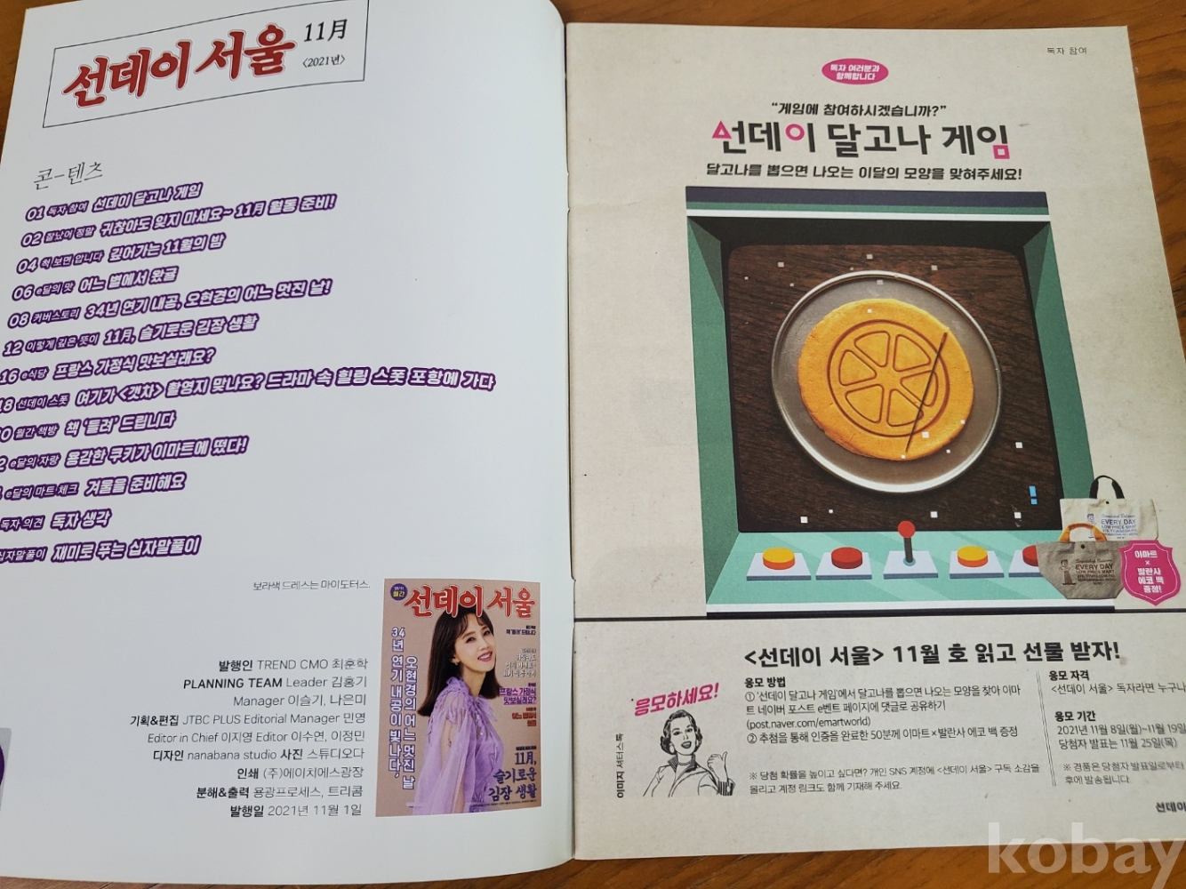 1. 선데이 서울 2021년 11월호, 이마트, 2021년, 28쪽, 월간, 비매품, 이마트 소식지, 표지 모델(배우 오현경), 상태 상, 사진 참조