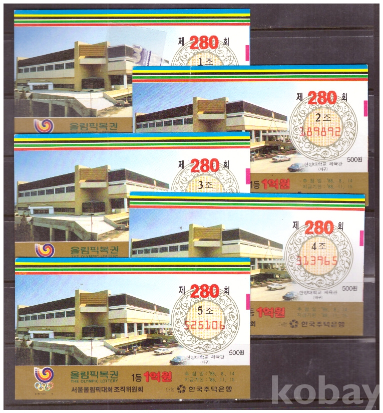 (서울올림픽) 1988 서울올림픽복권 제280회 1,2,3,4,5조 한양대학교 체육관(배구)