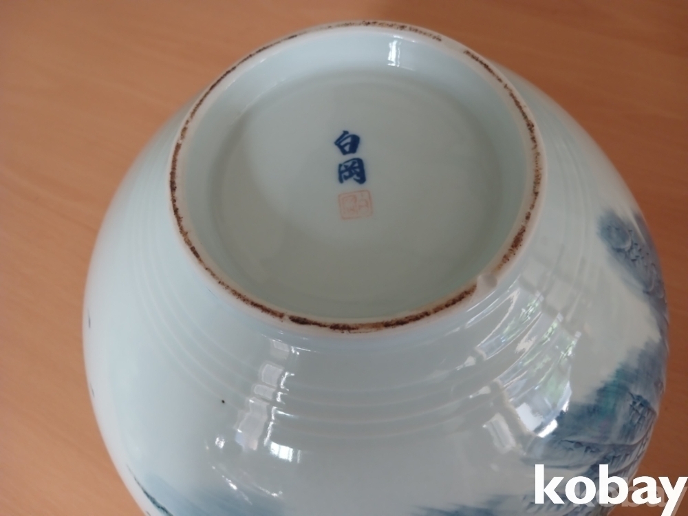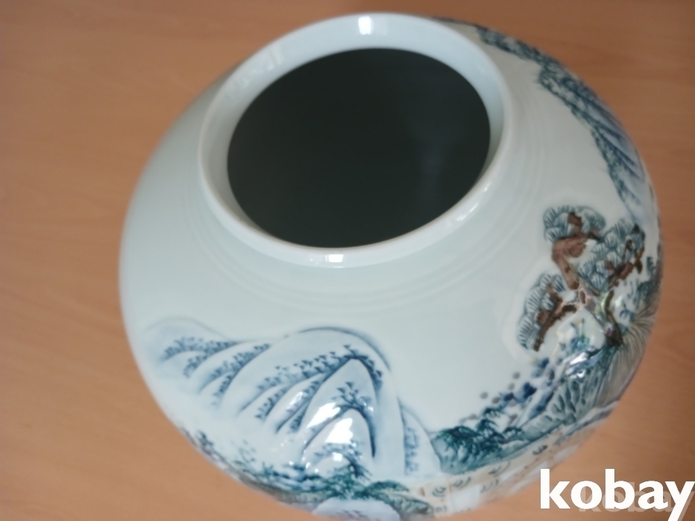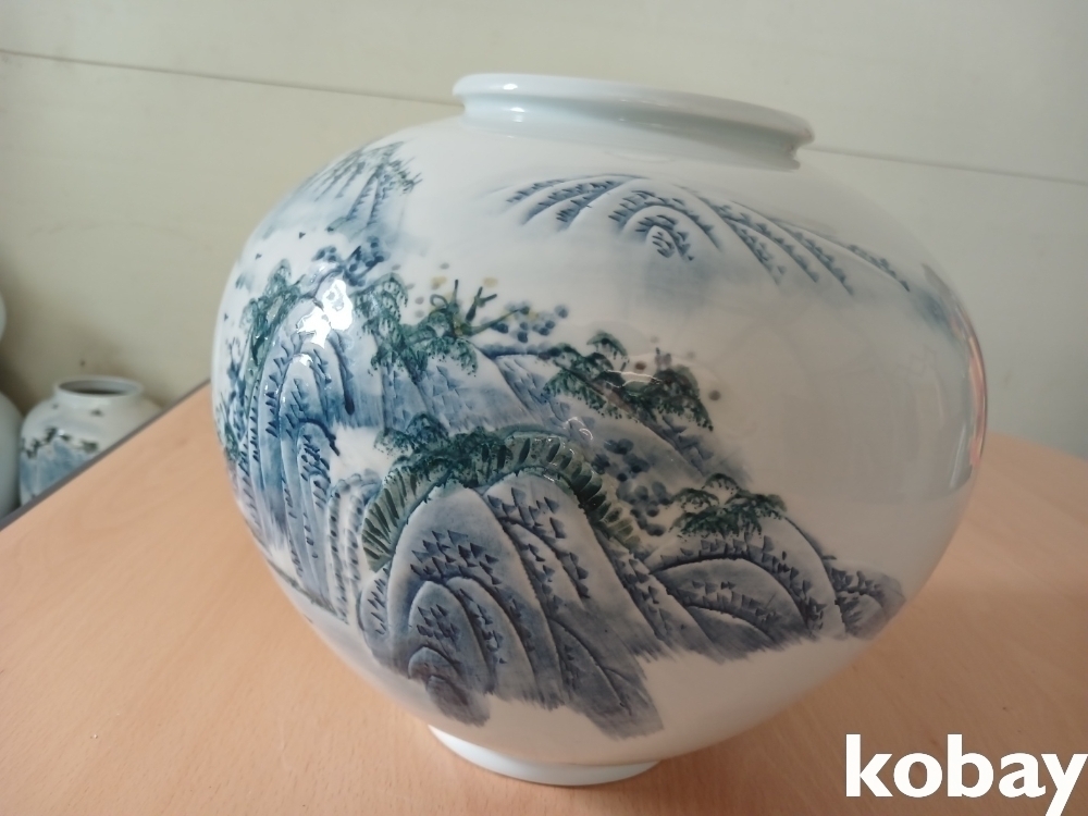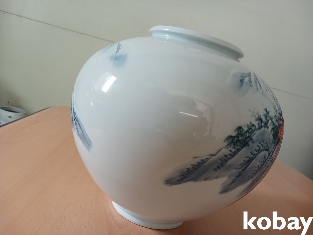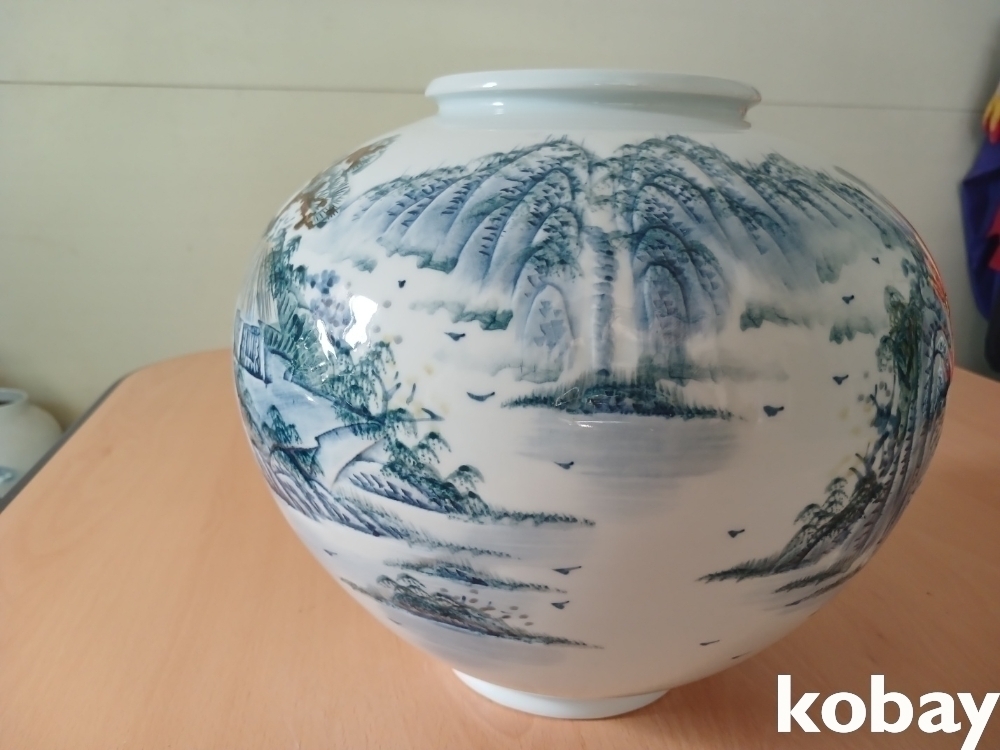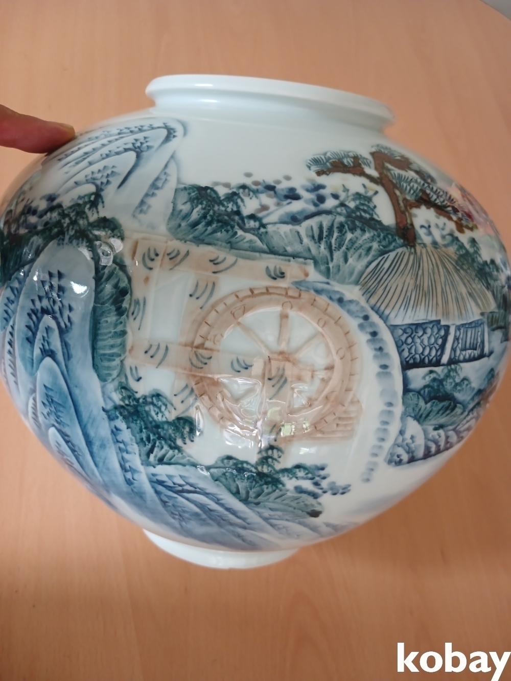 물레방아 산수 풍경 달 도자기 입니다.