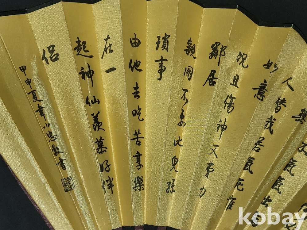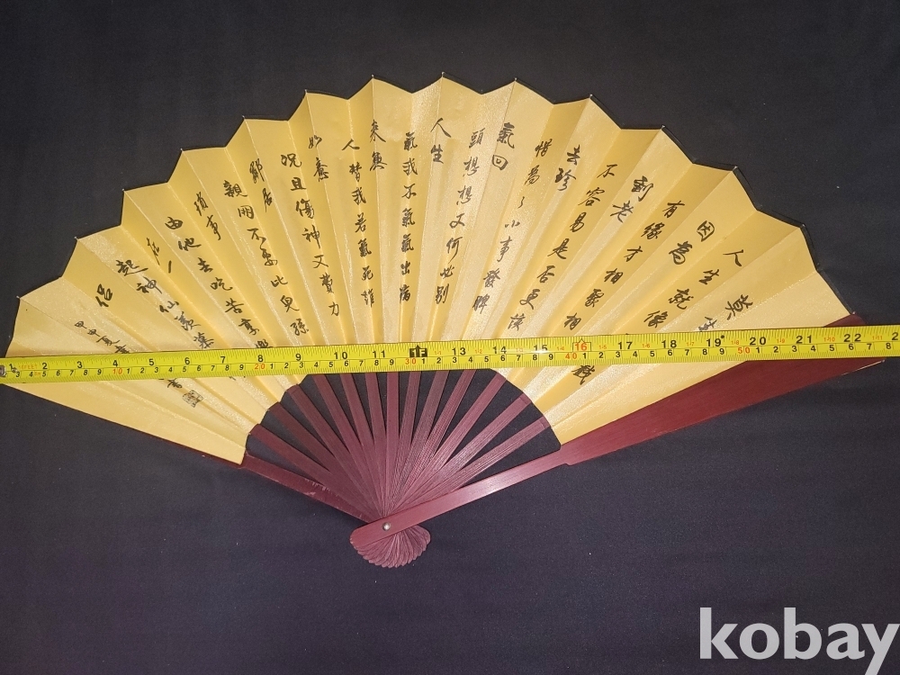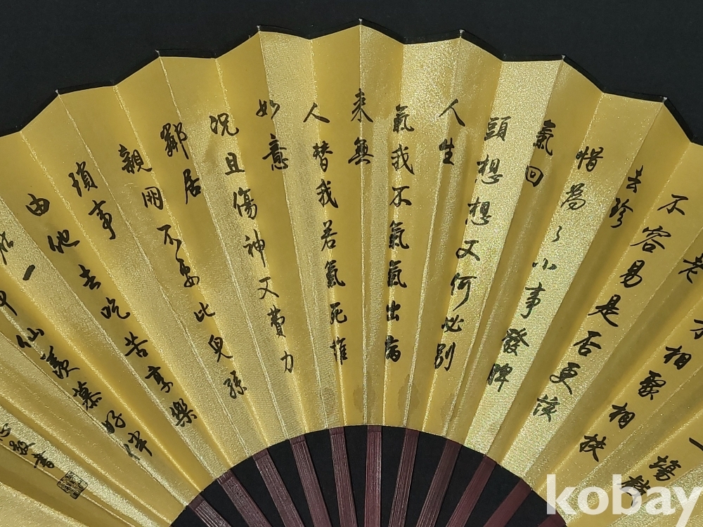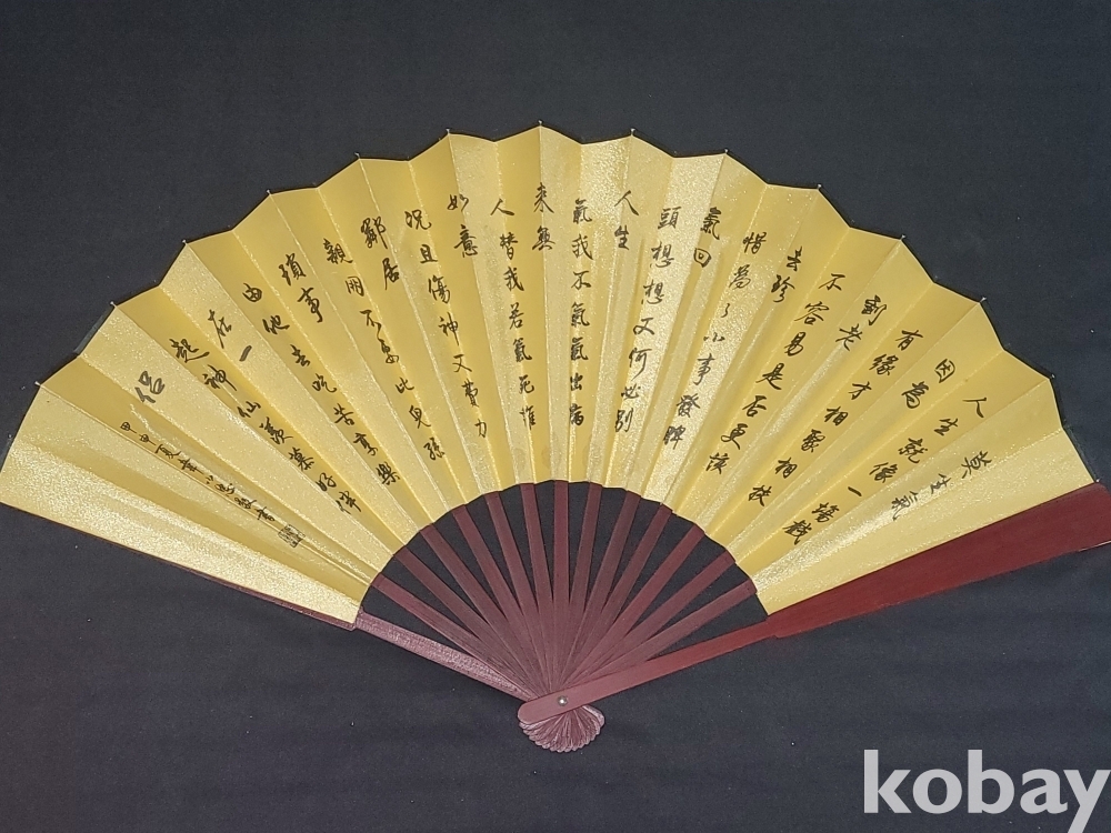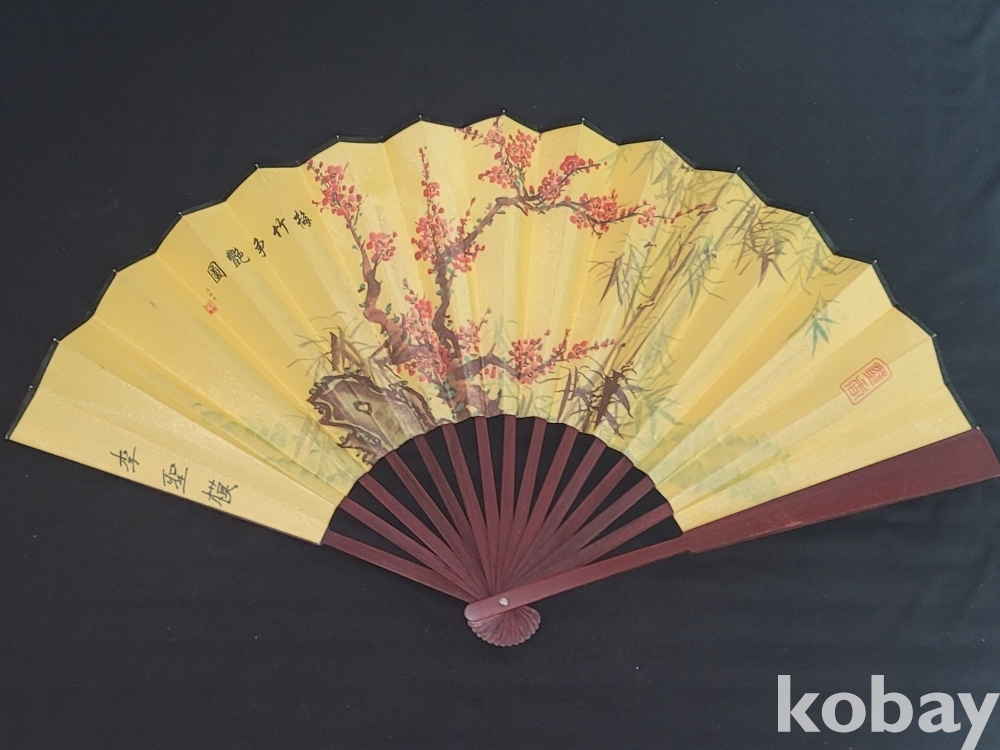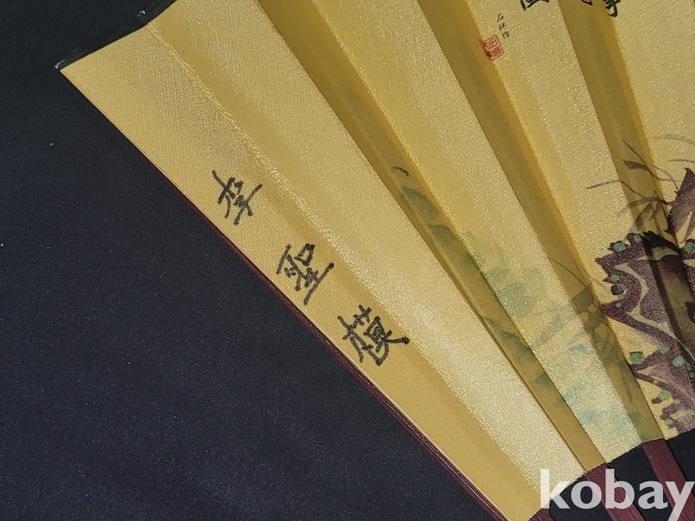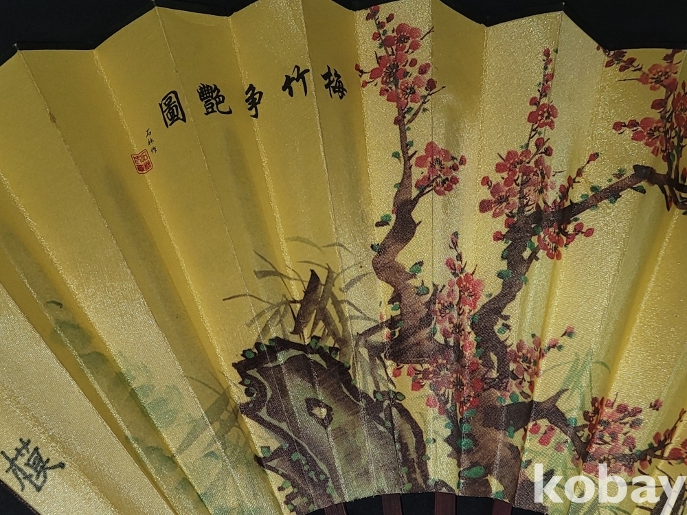 멋진 그림이 새겨진 고급 재질로 만들어진 접이식 부채입니다.