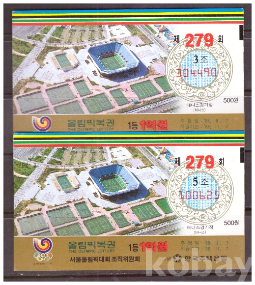 (서울올림픽) 1988 서울올림픽복권 제279회 3,5조 테니스경기장(테니스)