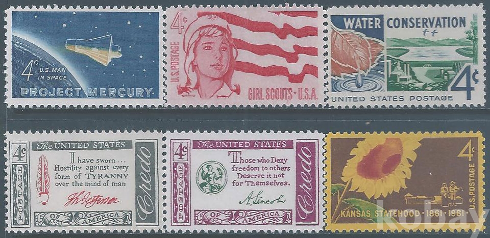 (외국우표13-4716)미국우표6종(미사용제)-MNH, VF