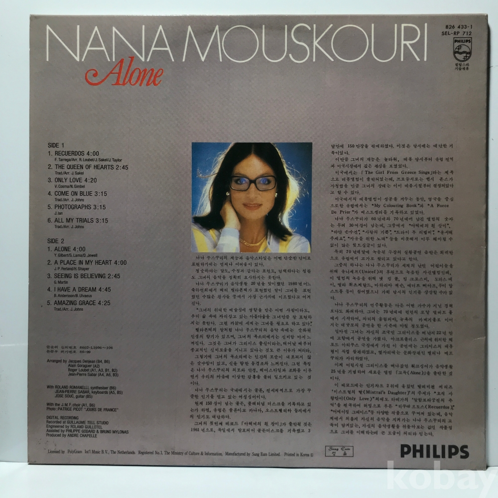 LP LP 1-21-1 Nana Mouskouri - Alone . 자켓 EX+ 알판 EX+ 86 년 국내반