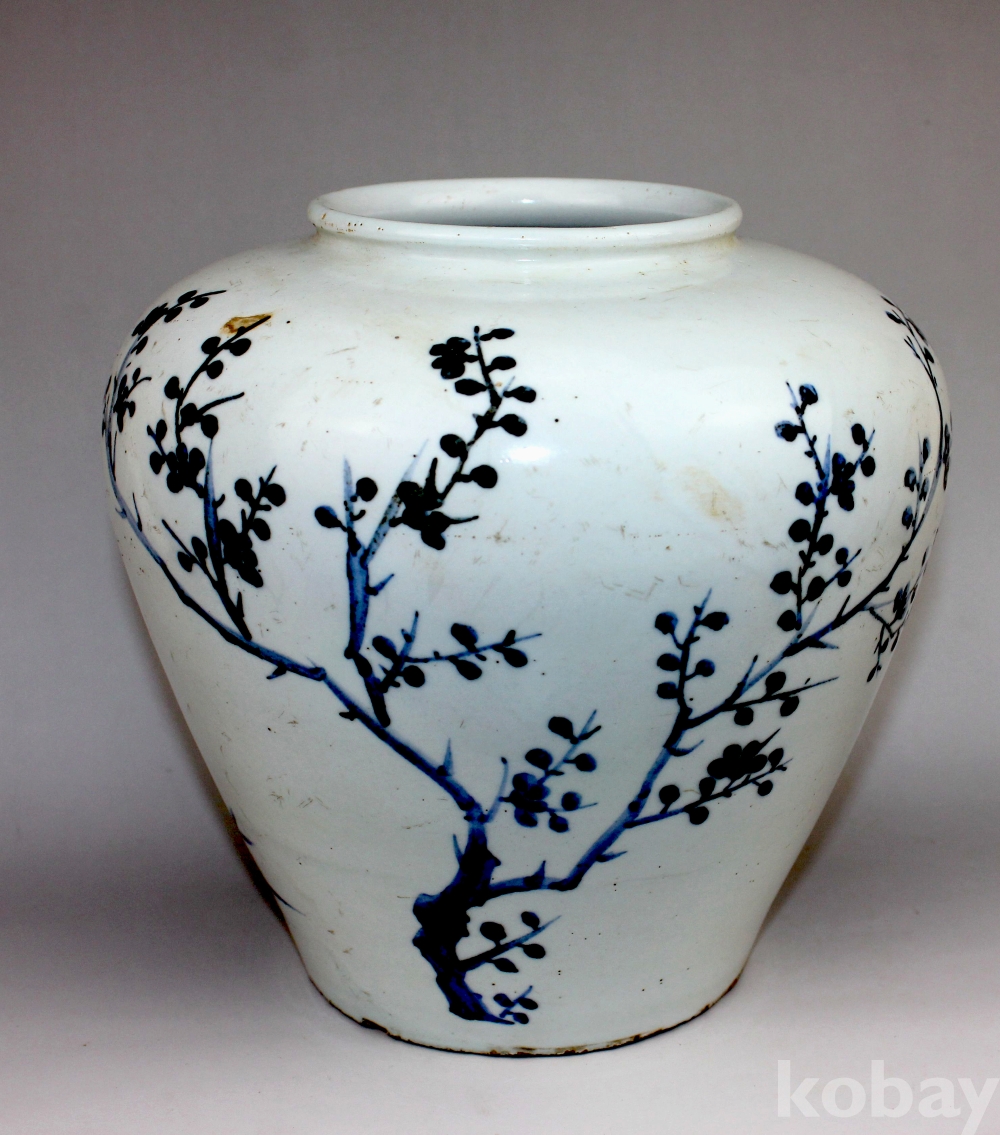 눈부신 백색 피부에 검푸른 청화로 정말 아름다운 항아리를 만들어 놓았습니다.