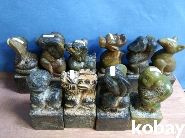 옥돌로 12 형상을 표현한 낙관 10개 입니다.