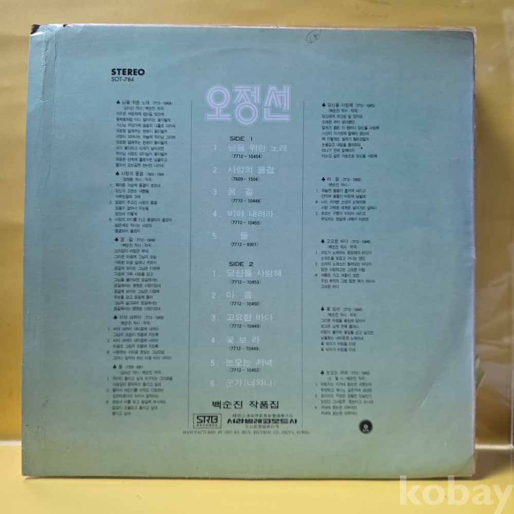 상품 설명 | Side A 1. 님을 위한 노래 2. 사랑의 물결 3. 꿈길 4. 비야 내려라 5. 돌 Side B 1. 당신을 사랑해 2. 마음 3. 고요한 바다 4. 꽃보라 5. 눈오는 저녁 6. 군가 (너와나) |