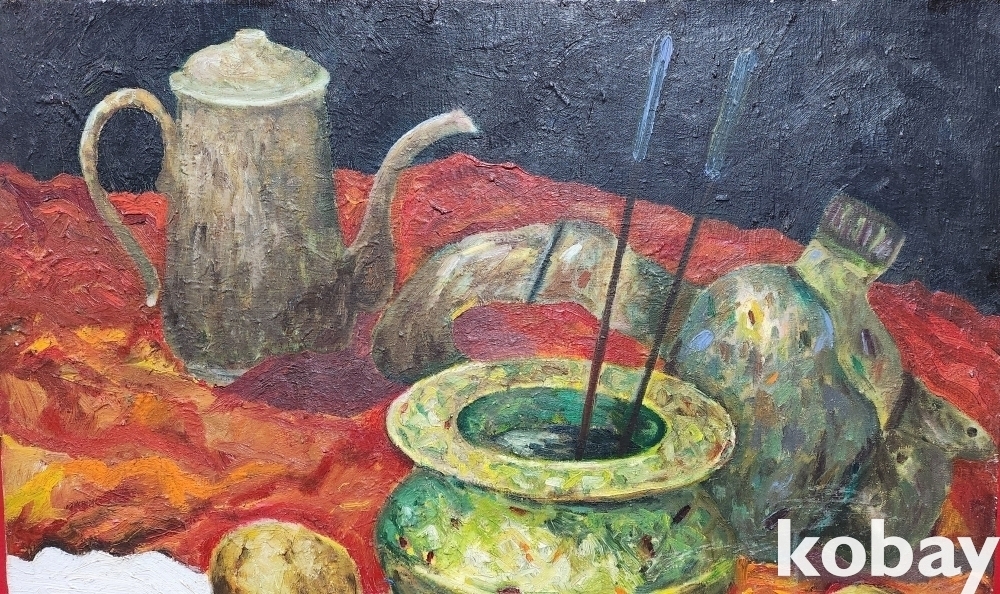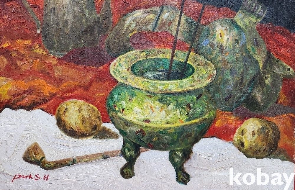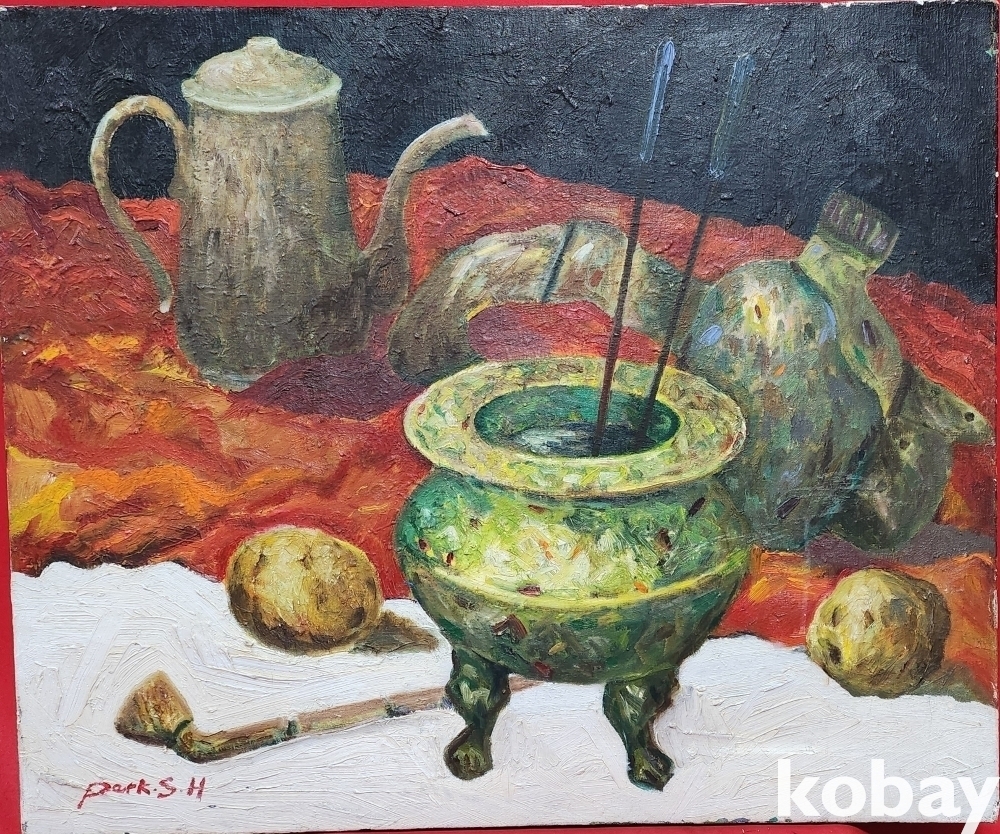 서양화가 사인이 보이는 켄버스 유화 정물 20호 작품입니다,