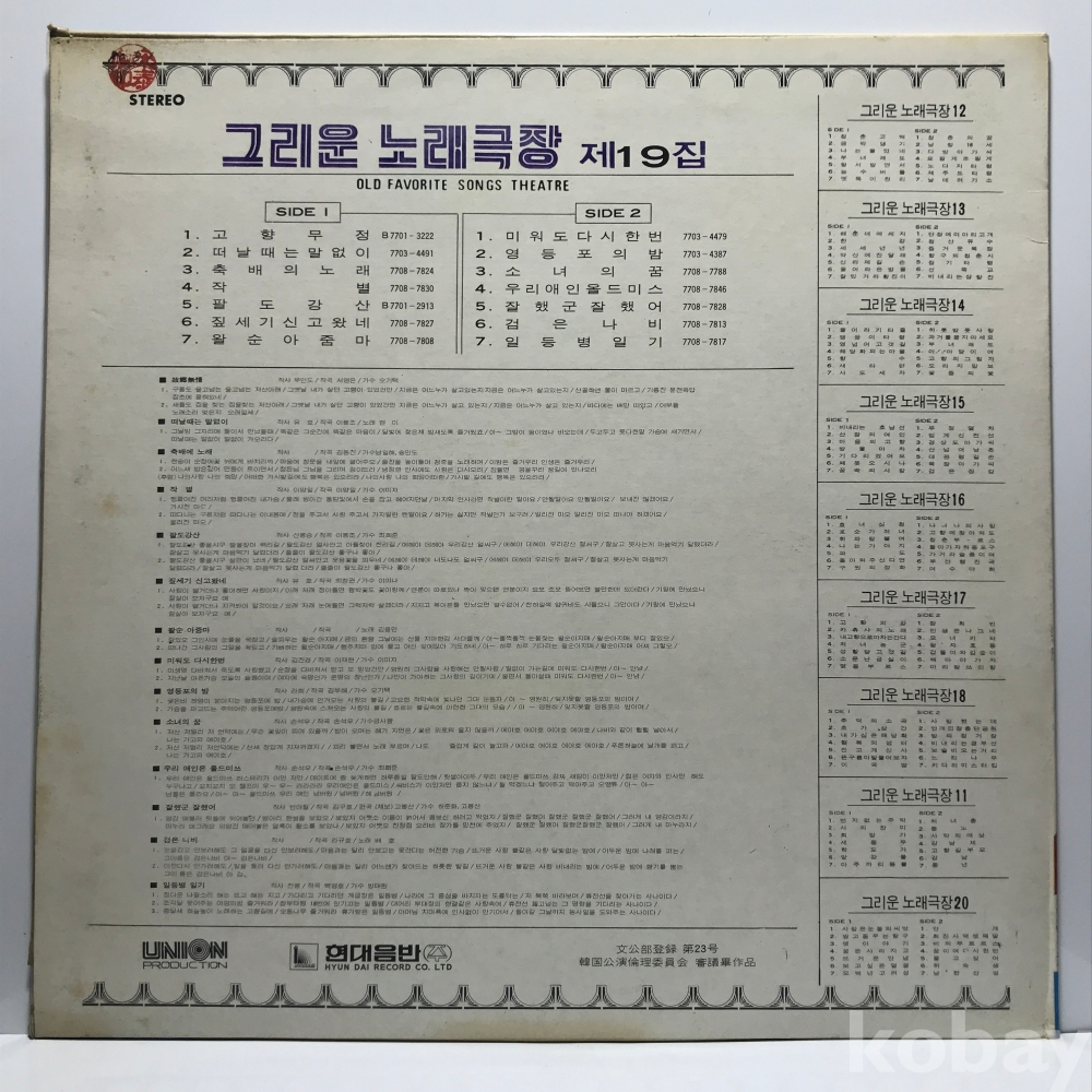 LP 27,555-194 그리운 노래극장 19집 - 오기택 현미 이미자 최희준 자켓 EX 알판 EX 79 년 국내반