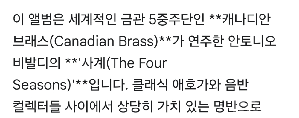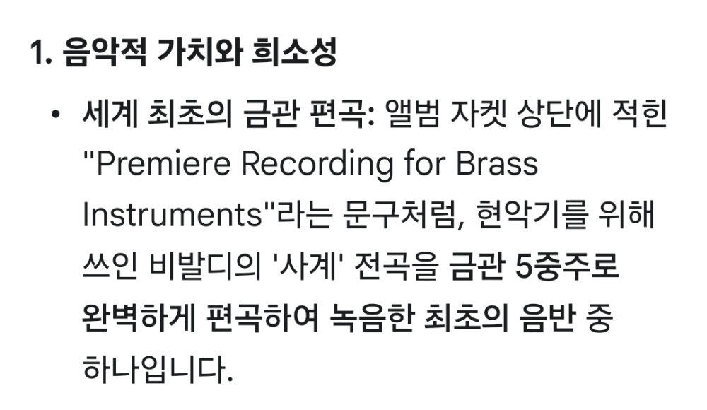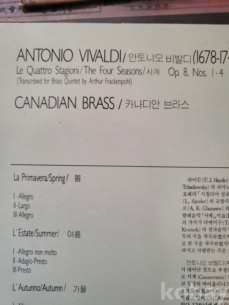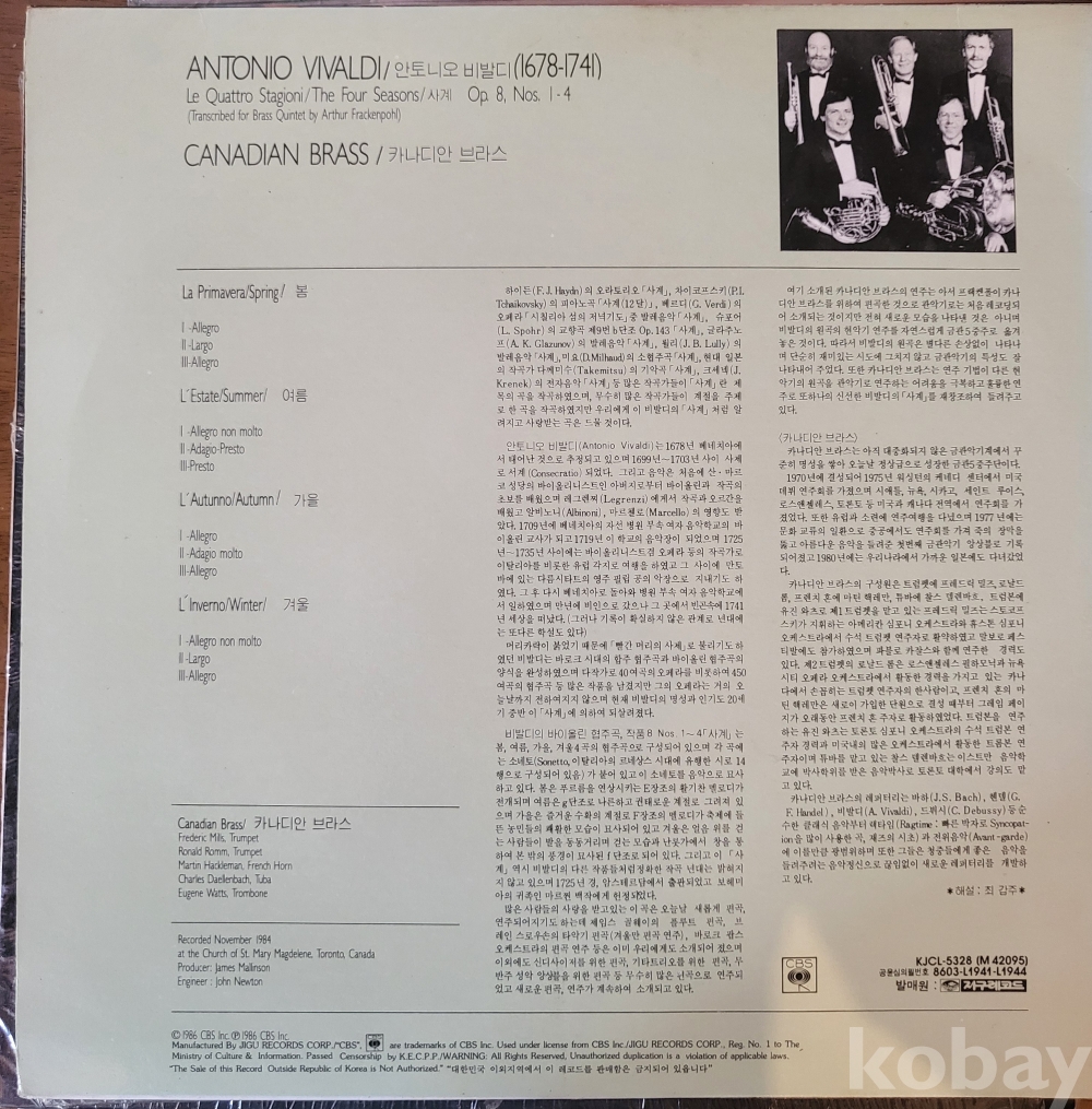 LP((☆10회 미만청음☆))((((☆금관5중주단 캐나디안 브래스 비발디의사계 최고의 명반☆☆☆)))))))(((☆☆클래식 애호가 분들께 강력하게 추천☆☆))