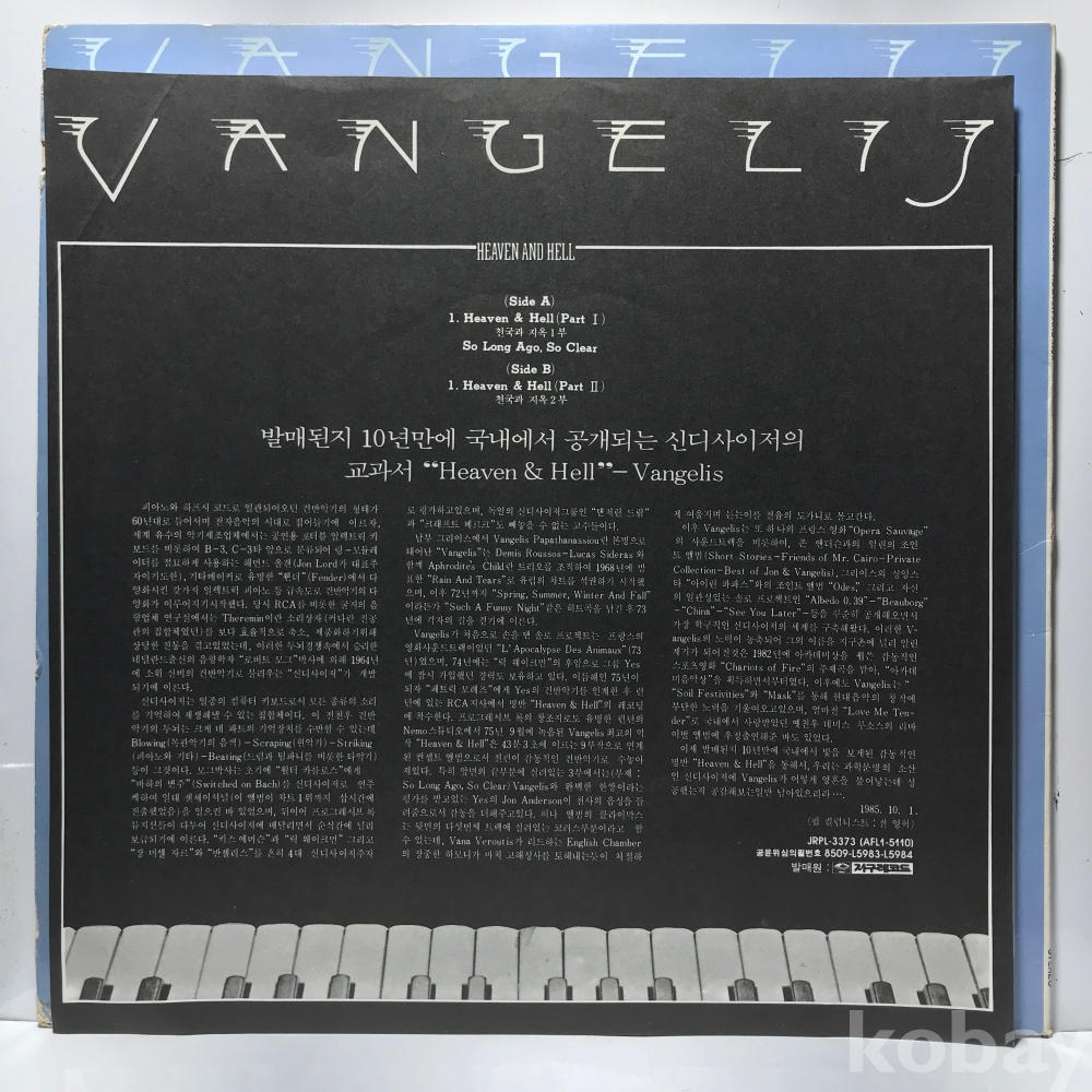 LP LP 1-22-3 Vangelis - Heaven And Hell . 자켓 EX 알판 EX 85 년 국내반
