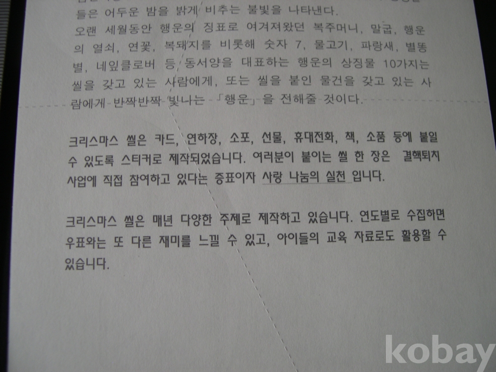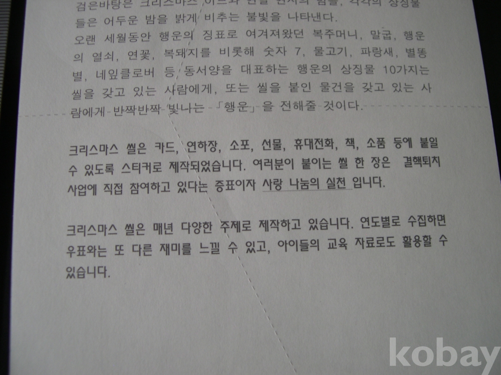 4. 크리스마스 씰은 이면 풀의 상태가 고르지 않고, 규격도 일정치 않은것이 많습니다.
