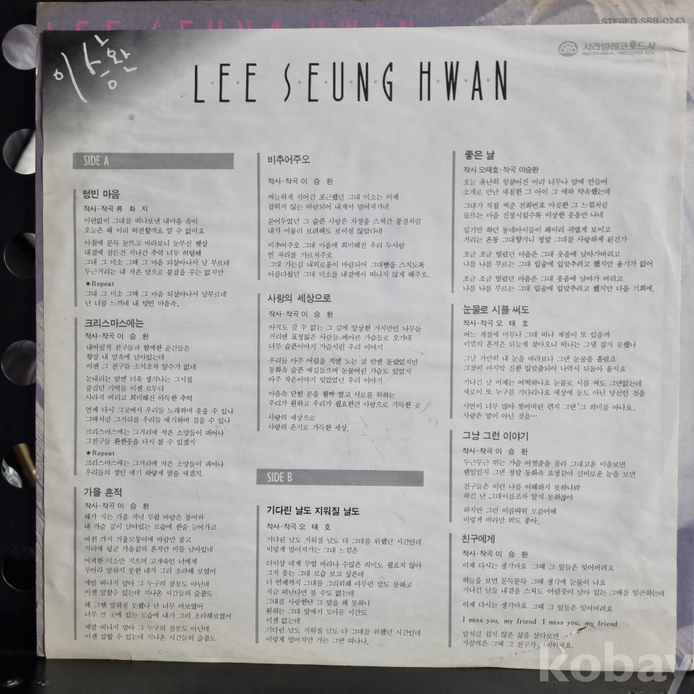 | 자켓상태 | EX : 약간의 마모, 모서리 찢김 존재 | 음반상태 | VG : 생활 기스 다수, 가벼운 노이즈 존재 | 발매정보 | 초반 | 가사지여부 | 유 |