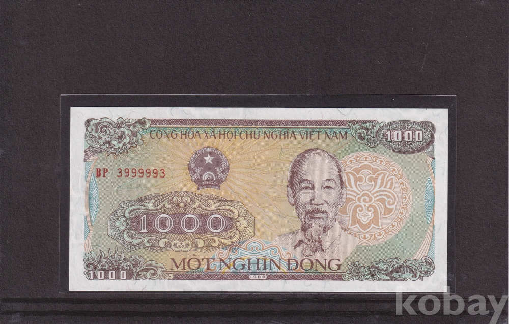 *베트남 특이번호 지폐 모음展* 1988년 1000동 BP 3999993 - 5봉 레이더 미사용 지폐