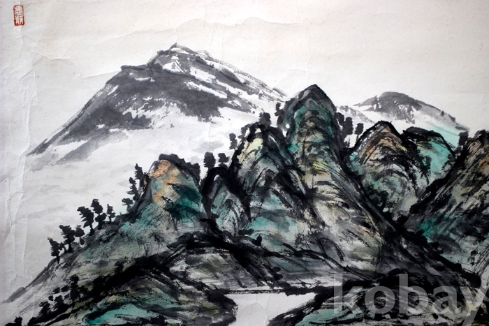 圓江(원강)의 하경 산수 - 산에 싸인 냇가의 여름풍경
