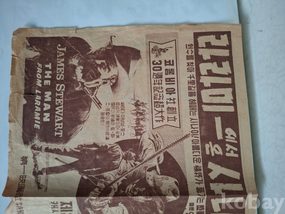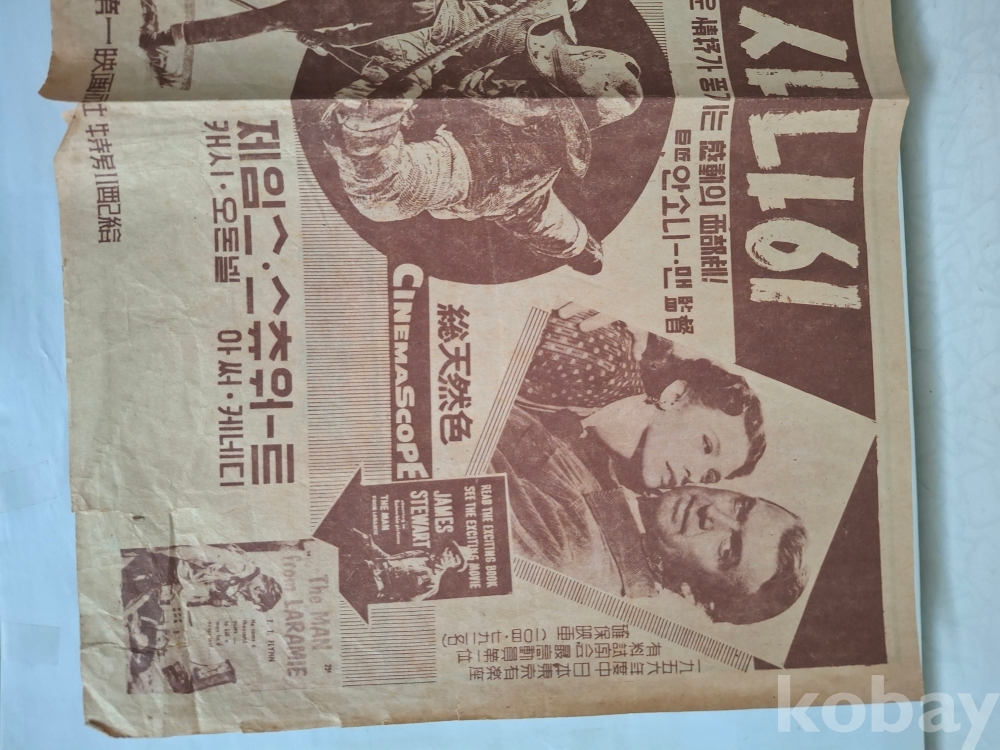 (포스터)는 1955년에 제작된 서부영화**the man from laramie**의 한국개봉 당시 홍보물입니다 주