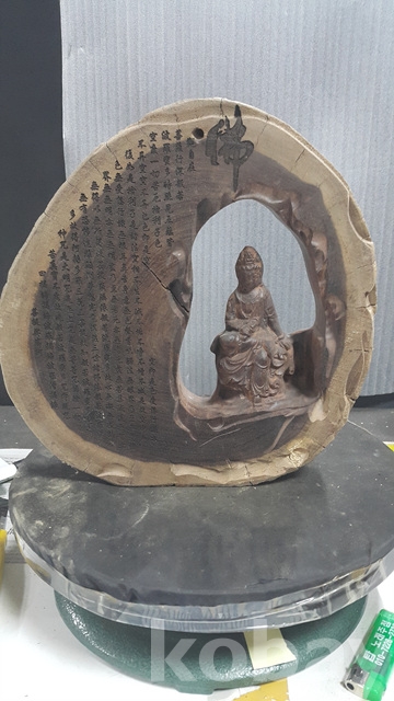 f-94.무거운 자연목흑단으로깍아만든불경과 관음 불상