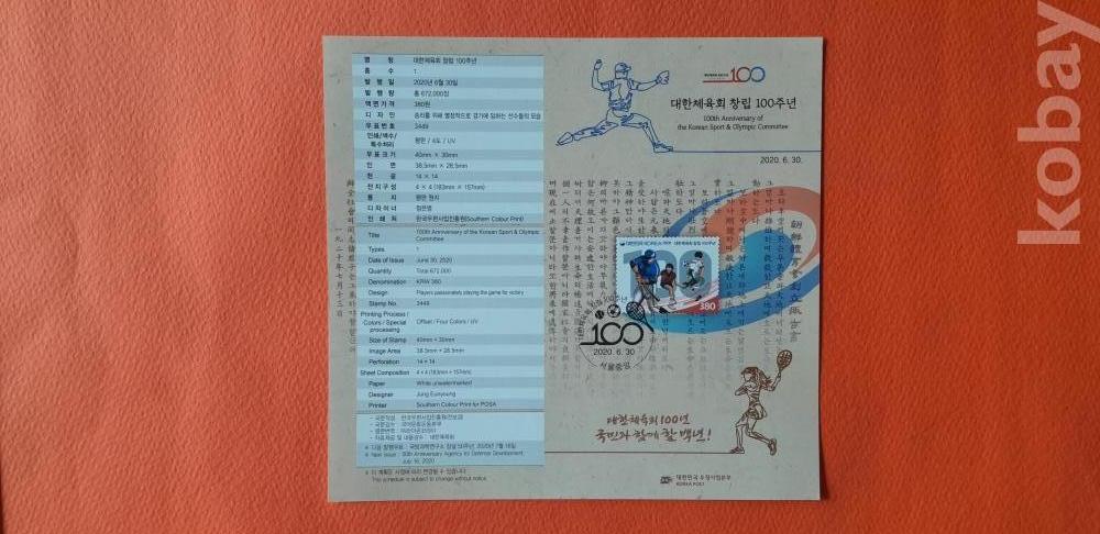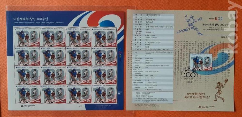 2020 대한체육회 창립 100주년(안내카드 포함) 16매 전지 입니다.