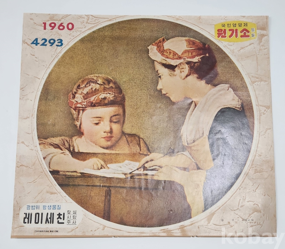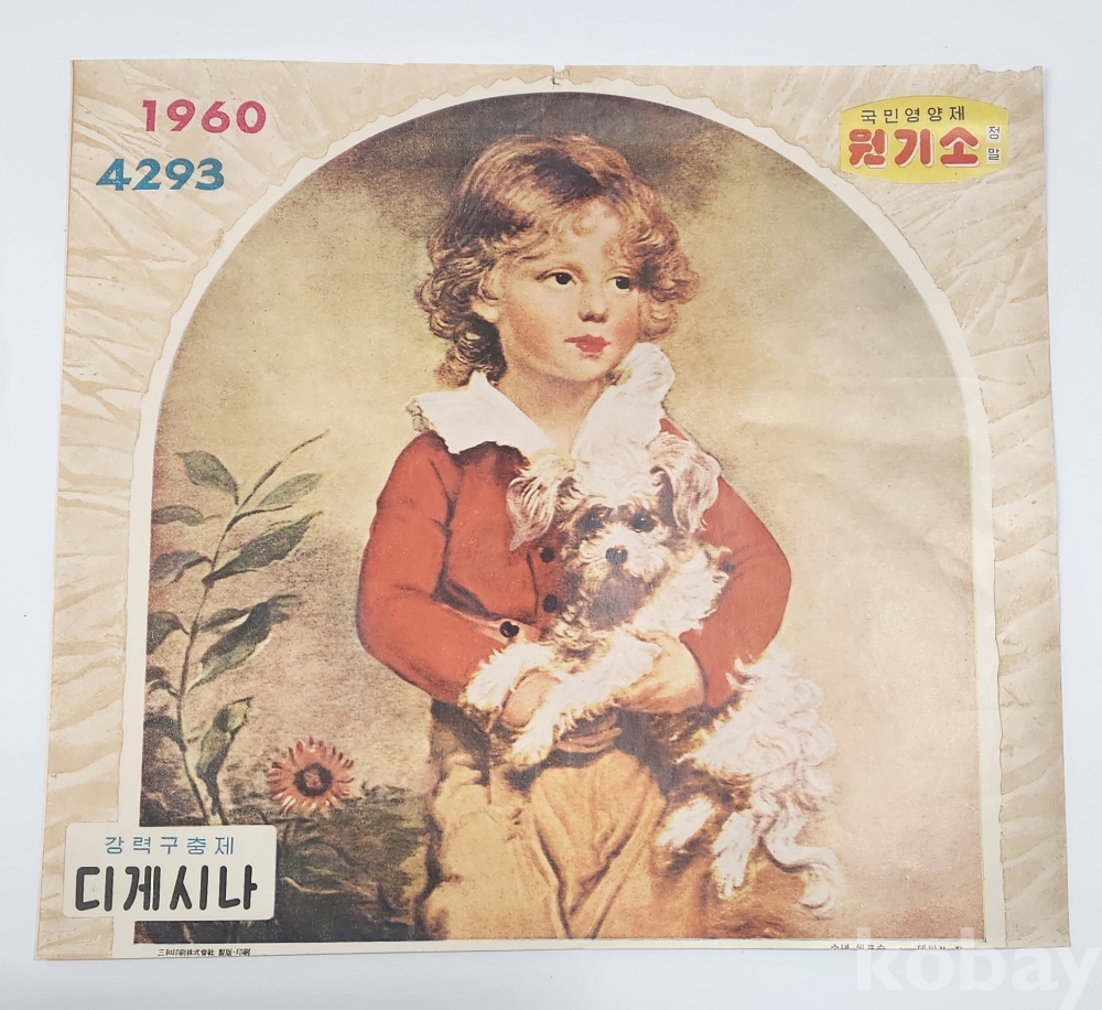 1960년 외국명화가 그려진 구충제 광고 전단지 5장일괄.
