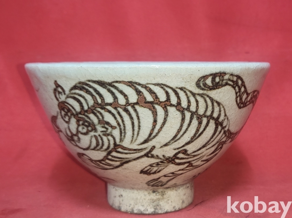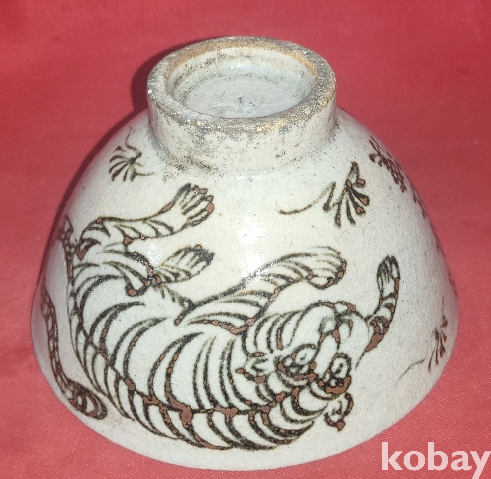 100년 이상의 연대 갖춘 철화 문자와 호랑이문양 다완입니다,